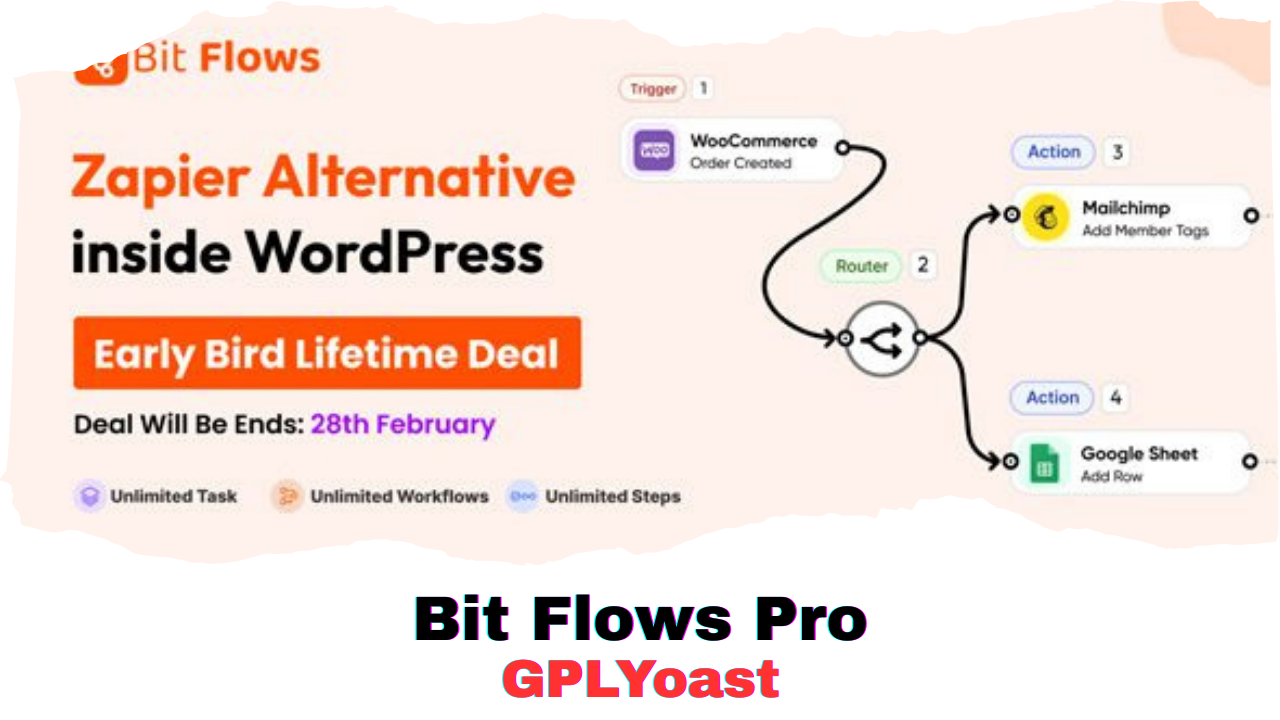 » Original GPL VersionBit Flows Pro is an advanced workflow automation plugin designed for WordPress users who want to streamline tasks without recurring subscription costs. With an intuitive drag-and-drop automation builder, Bit Flows enables users to send data across multiple platforms effortlessly. Whether you’re integrating WordPress plugins or third-party services, this plugin provides a no-code solution to complex automation needs. Its self-hosted nature ensures that you have complete control, eliminating SaaS limitations like those found in tools such as Zapier or n8n.