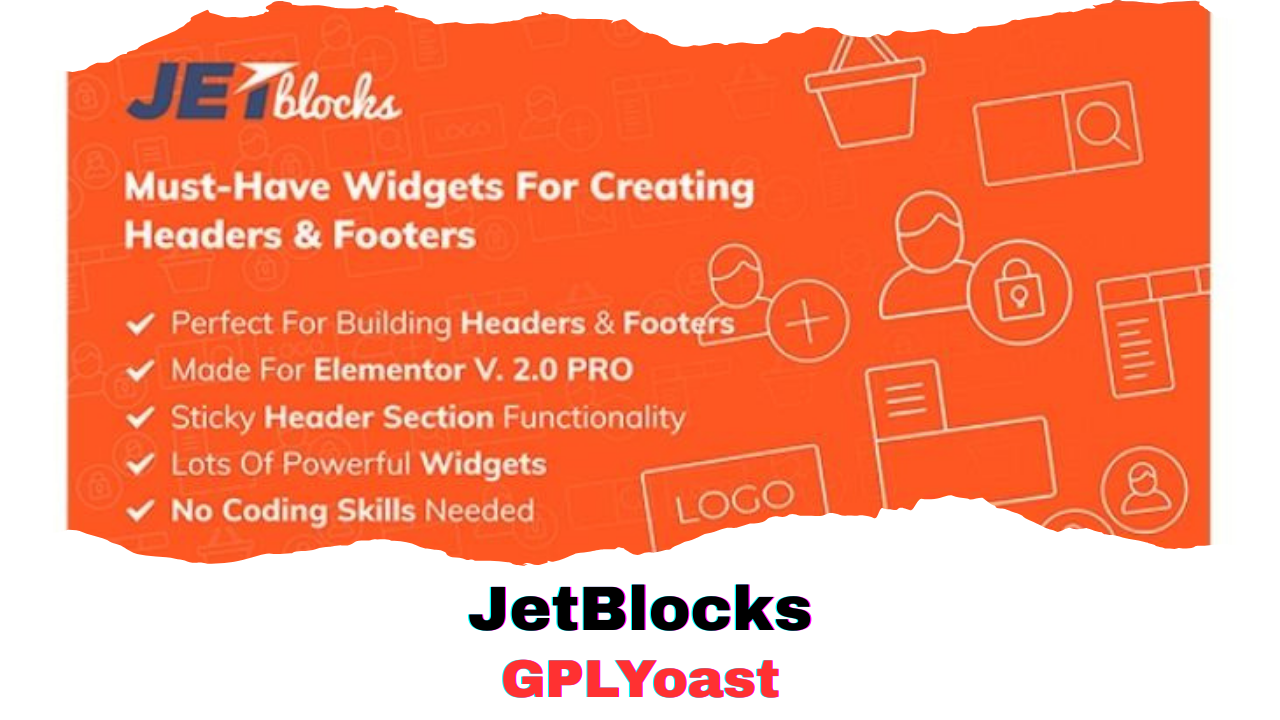JetBlocks is a plugin for the Elementor page builder for WordPress. It adds a set of highly functional widgets that can be used to enrich the headers and footers of a website with additional content. These widgets include things like login forms, search bars, social media icons, and menus.
