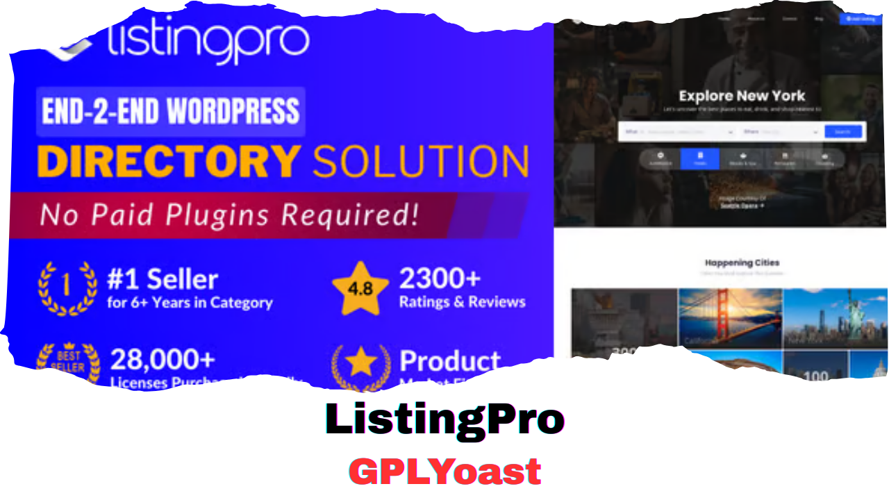 » Original GPL VersionListingPro is a modern and responsive WordPress directory theme. This theme has been designed for any niche and has a lots of feature which will help you to create an amazing directory website with the best professionals. You can use it for free or buy our premium version with extra functionalities like API connection, map tickets integration, premium SEO features and more.
