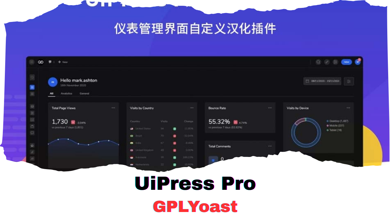 » Original GPL VersionUiPress Pro (WP Admin 2020) is a premium WordPress plugin that provides a modern and streamlined dashboard for users. With a clean and minimalist design, it offers a distraction-free interface for users to focus on their tasks. The plugin comes with a variety of features including Google Analytics integration, a quick and powerful media library, a dark mode, white label, and more.