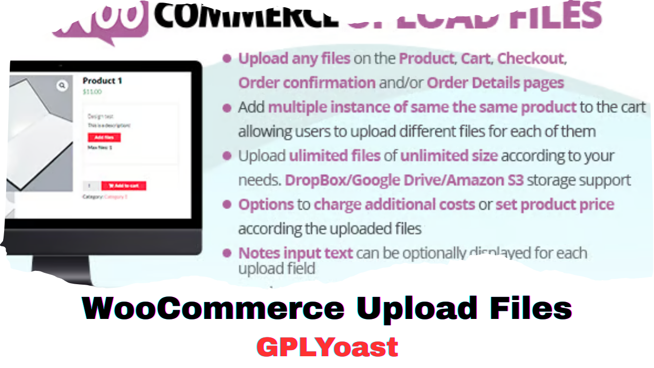 » Original GPL VersionThe WooCommerce Upload Files plugin is a powerful extension designed to enhance the functionality of your WooCommerce store by allowing customers to upload files of any size at various stages of their shopping journey. This includes the product, cart, checkout, thank you, and order details pages. The plugin offers a multitude of features such as image preview, additional cost settings, and customizable upload field configurations, making it ideal for businesses that require file uploads from customers, such as print shops, custom product retailers, and more.